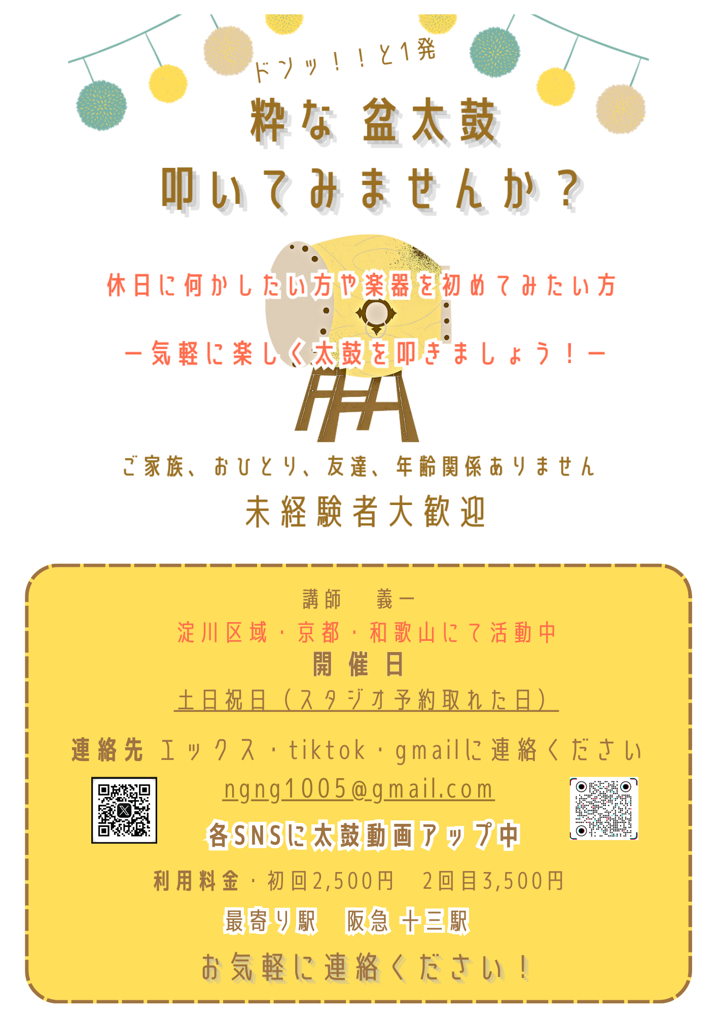 Studioくらぼねでは、地域で長年活躍されている 中島義一さん を講師にお迎えして、楽しく盆太鼓を体験できる機会をご用意しました。